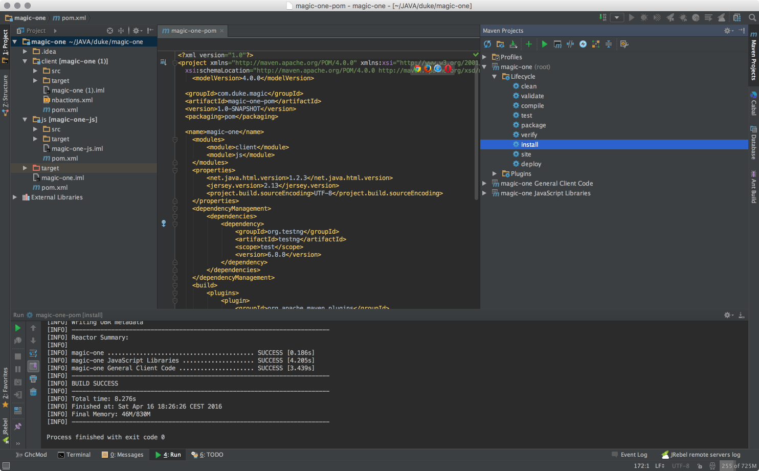 DukeScript is a cool project following Java’s general idea : WORA (WODE) (‘Write once, run anywhere’). But it was sad to see DukeScript has forgotten about IntelliJ IDEA users. IntelliJ IDEA is almost an open source project too (JetBrains is offering a Community edition), and one of the most famous IDEs in the world. (together with its competitors VIM, NetBeans, Eclipse…). This blog post is devoted to them.