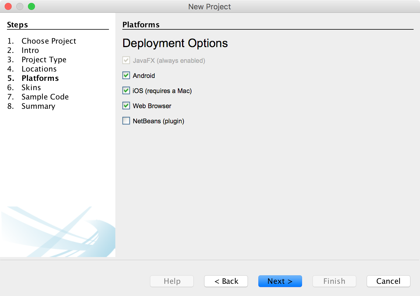 - In step 5 you can choose the platforms you want to support.