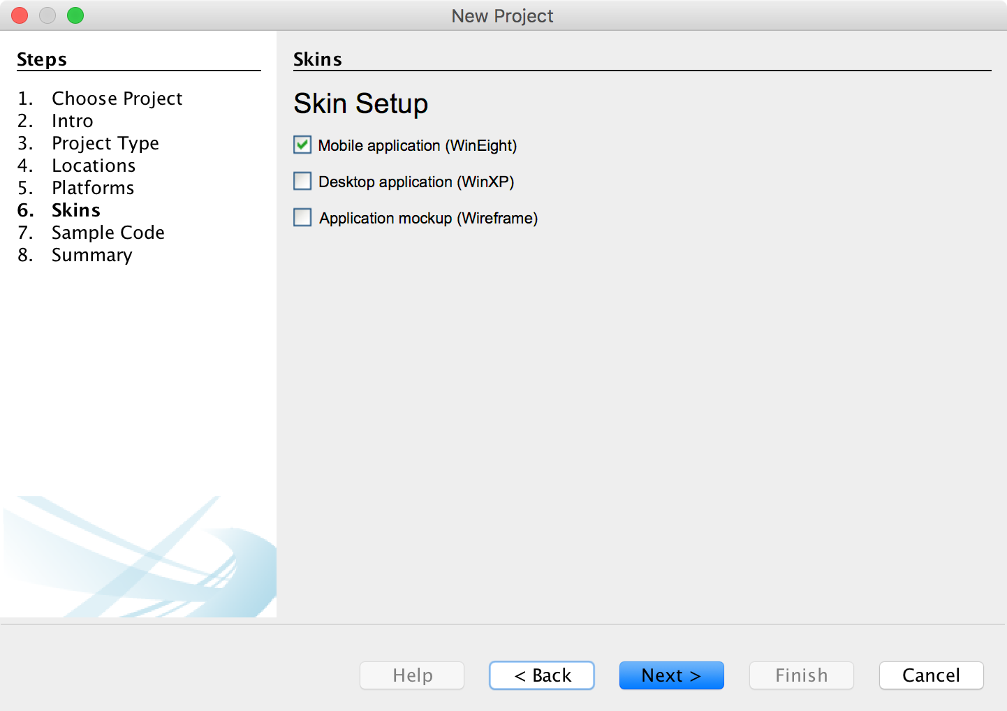- Step 6 allows you to decide how your controls will be styled by selecting a Skin.