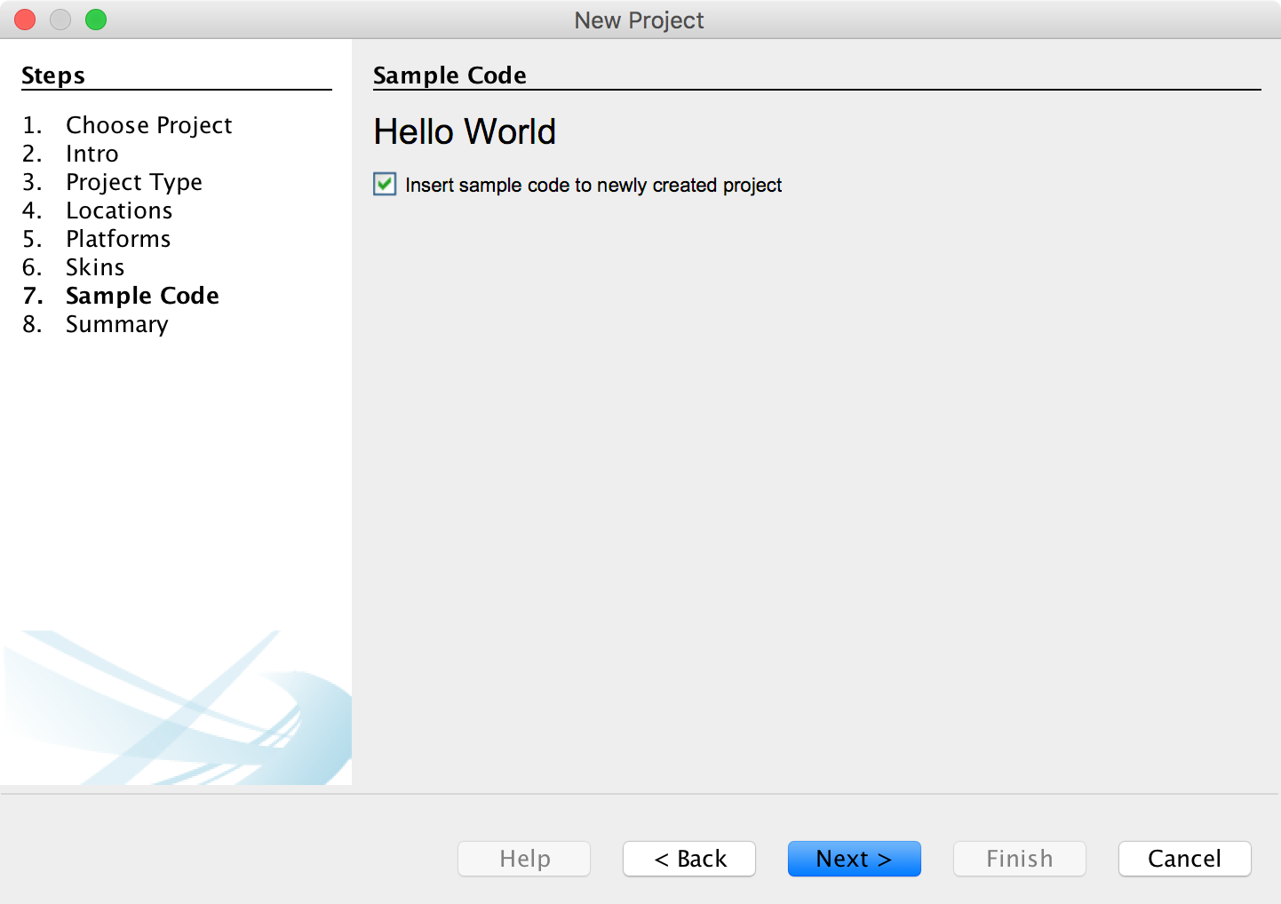 - In Step 7 you can choose to start with some example code.